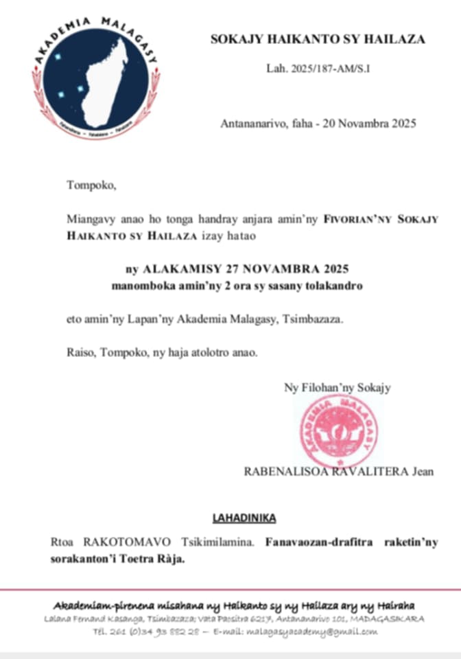 Ao amin'ny Akademia malagasy ny fotoana hamelabelaran'i Tsikimilamina